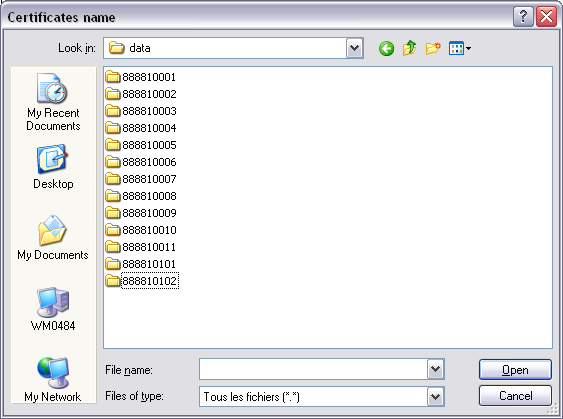 Click on "Import" button and select the certificate you want to install: