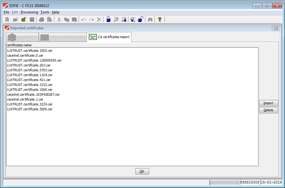 Click on SOFiE menu "Tools->Import certificates:"