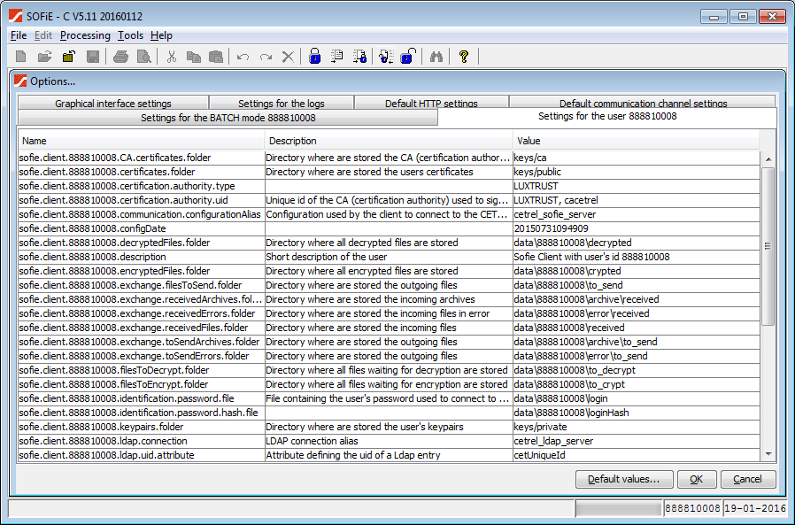 Here you can specify different working folders than the default ones.